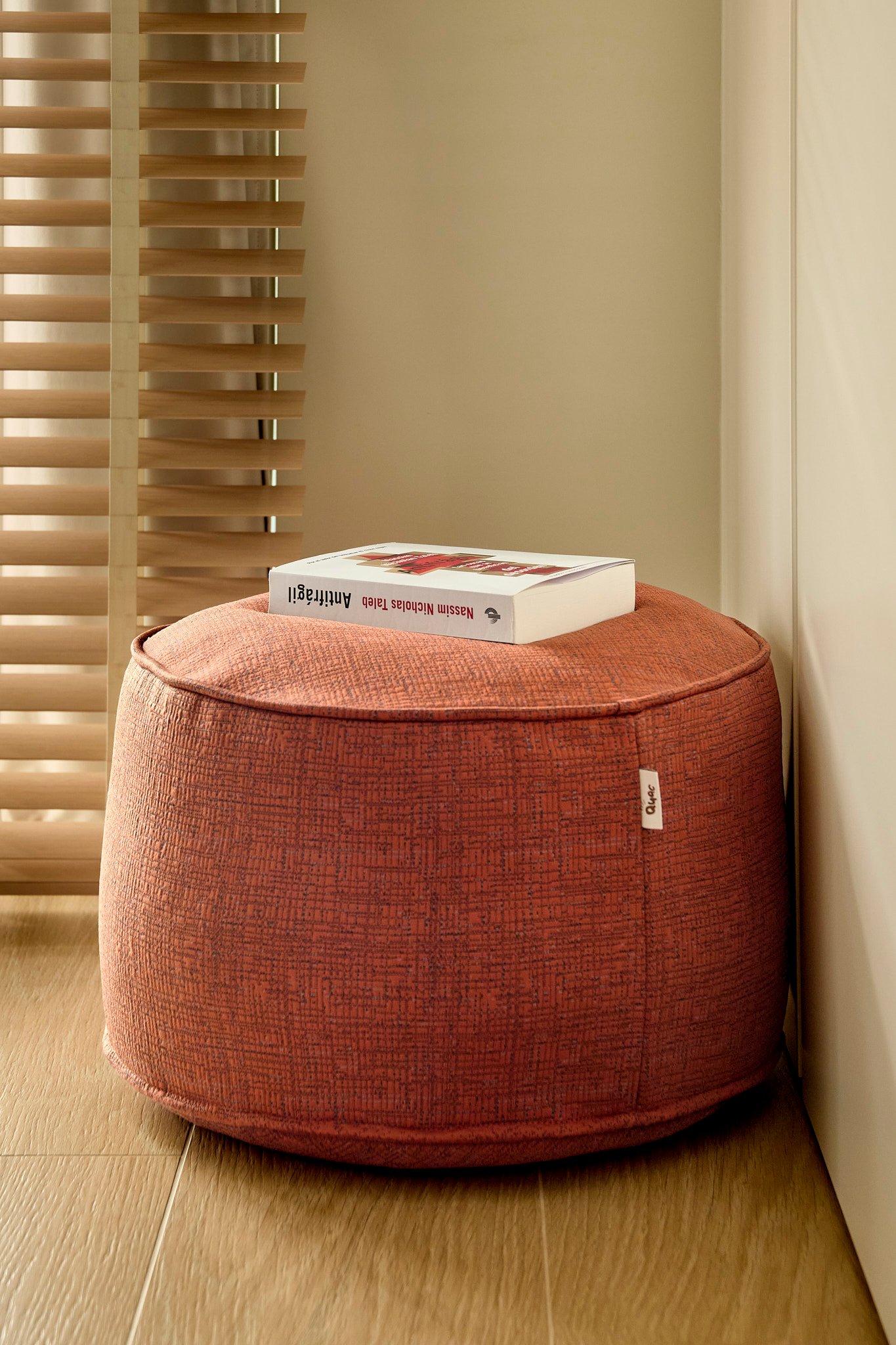 Su relleno de perlas de poliestireno se adapta perfectamente al cuerpo, proporcionando una comodidad envolvente. Gracias a su tamaño compacto, es ideal como asiento auxiliar, reposapiés o mesita de apoyo en el salón, dormitorio o rincón de lectura.